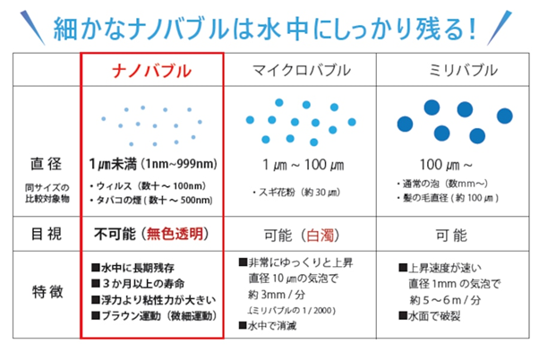 泡の大きさ | 1〜100μm | 1μm未満 |